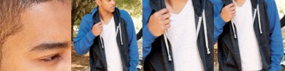 - Contrast raglan sleeves, hood and drawcord