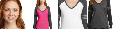 DM477 Distict Made DM477 Ladies Game Long Sleeve V Neck Tee