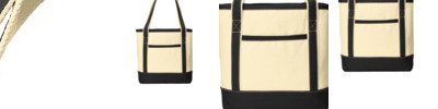 Perfect for the beach, shopping and events, these durable totes have open tops, contrast handles and contrast bottoms for classic good looks.