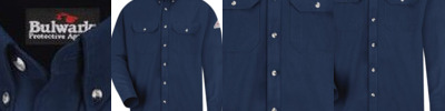- Two button-thru, hex-style chest pockets with bartack reinforcement and pencil stall on left chest.