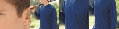A long-sleeve option in moisture-wicking polyester.