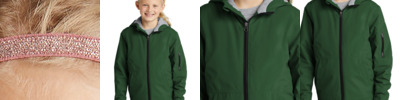 - 100% polyester knit shell with a durable water-repellent (DWR) coating bonded to a water-resistant film insert and a 100% polyester brushed tricot interior