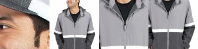 - Gunmetal reflective taping details at shoulders and pockets