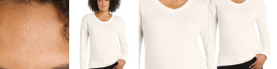 - Seamless 1x1 rib collar with two-needle coverstitching on front neck