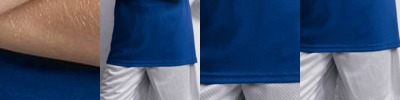 - 5.3 oz., 95/5 cotton/spandex jersey knit, 30 singles