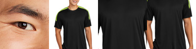 - 3.8-ounce, 100% polyester interlock with PosiCharge technology
