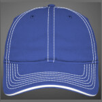 100% cotton twill fabric; Low-profile structured crown with buckram-fused front panels; Pre-curved PE visor; Charcoal colored fronts and white contrast colored stitching on all colors; ProSweatband with twill face.